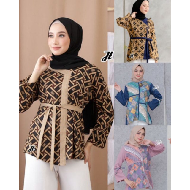 Paling Murah Pakaian W di Kota Mamuju Ori Atasan Blus Batik Wanita Modern Halus Dolby Kombinasi Brokat Polos dari Batikku_pekalongan Kota Pekalongan
