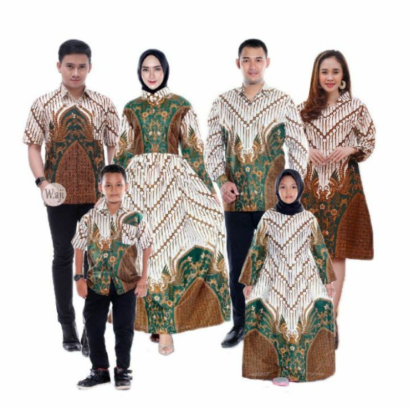 Distributor Pakaian W di Kabupaten Toli-Toli Maura Couple Sania Ruffle Batik Couple Keluarga Ori Motif Nusantara Hijau dari Batikjoloberkah Kota Pekalongan