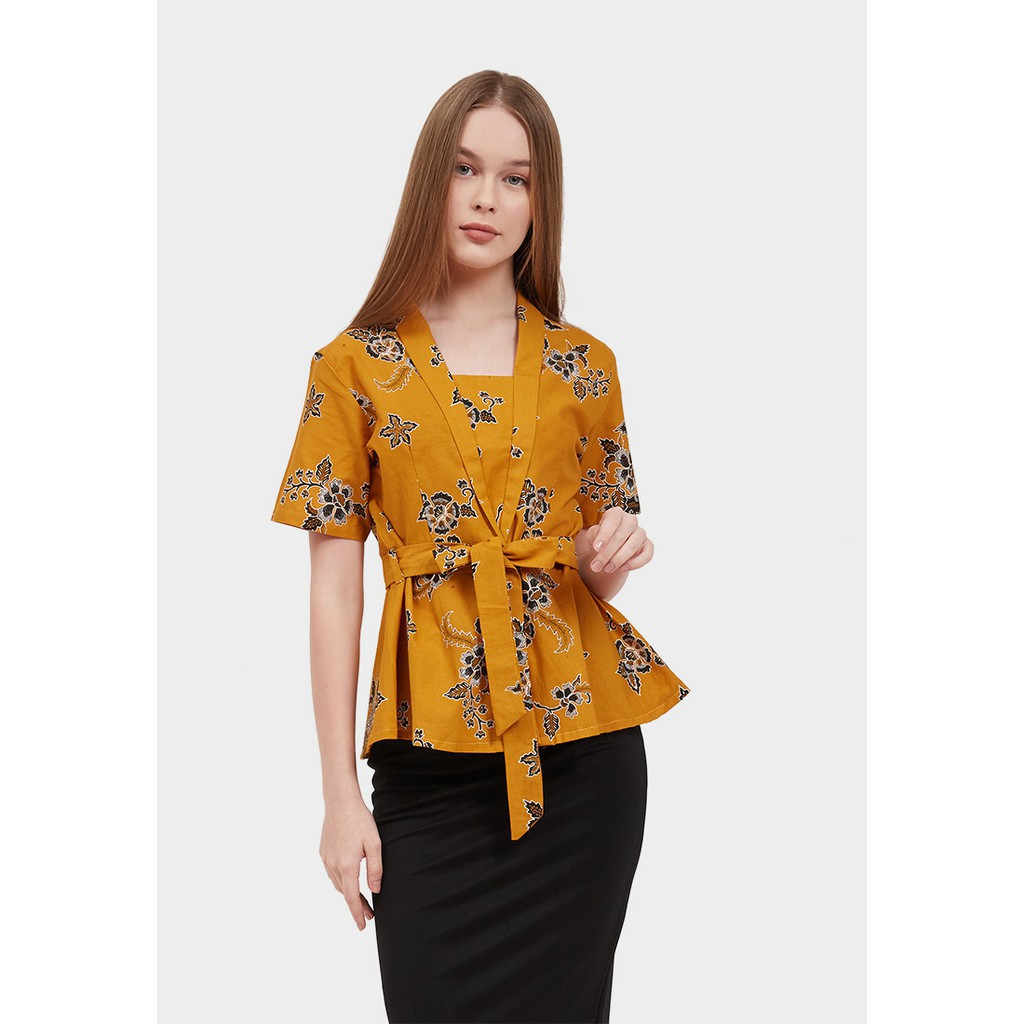 - Blouse warna cerah dengan motif batik print