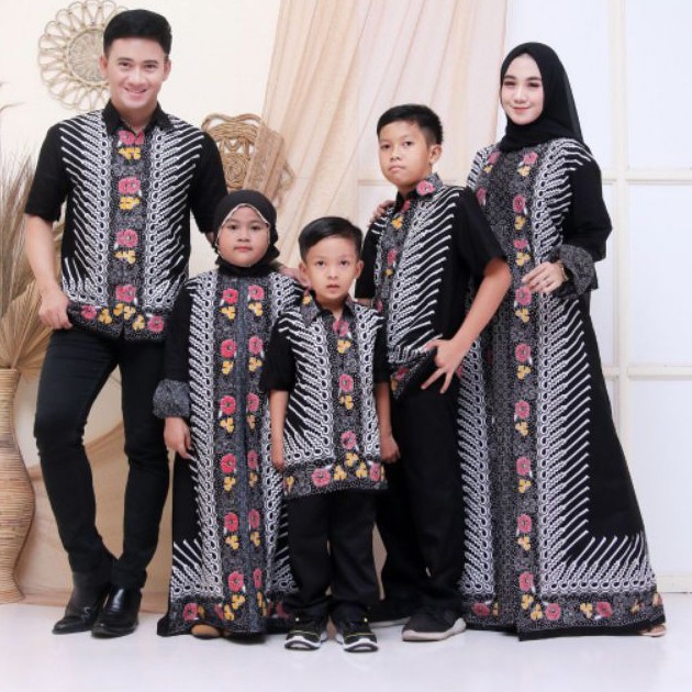 Name: Aska Couple, Batik Couple Keluarga// Batik Sarimbit Keluarga Motif Modang Bunga Hitam Terbaru